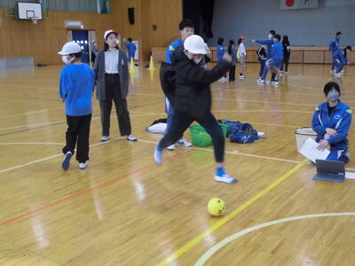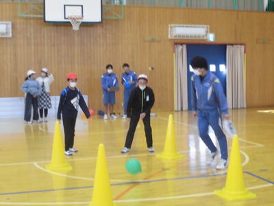 5校時、4年生は小川体育館で親子でボッチャを行いました。