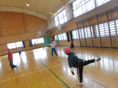 3・4組の児童は、馬頭中学校で行われた「ニュースポーツ交流会」に参加しました。