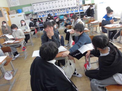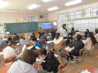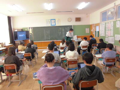 6年生の保護者の皆さんは、親子活動後、町生涯学習課による「親学習」に参加しました。