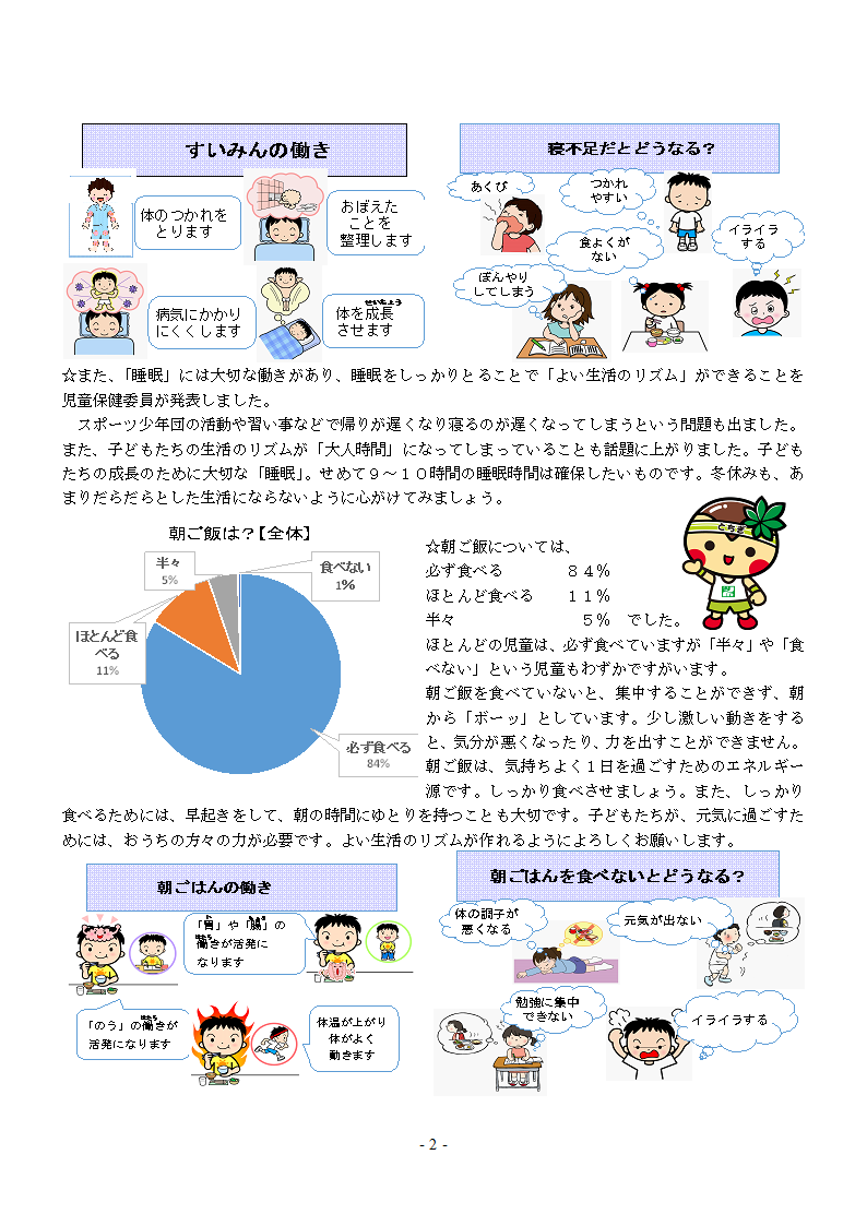 次に、保健委員が、「早寝、早起き、朝ご飯~生活のリズムを考えよう~」のテーマでプレゼンテーションしました。
