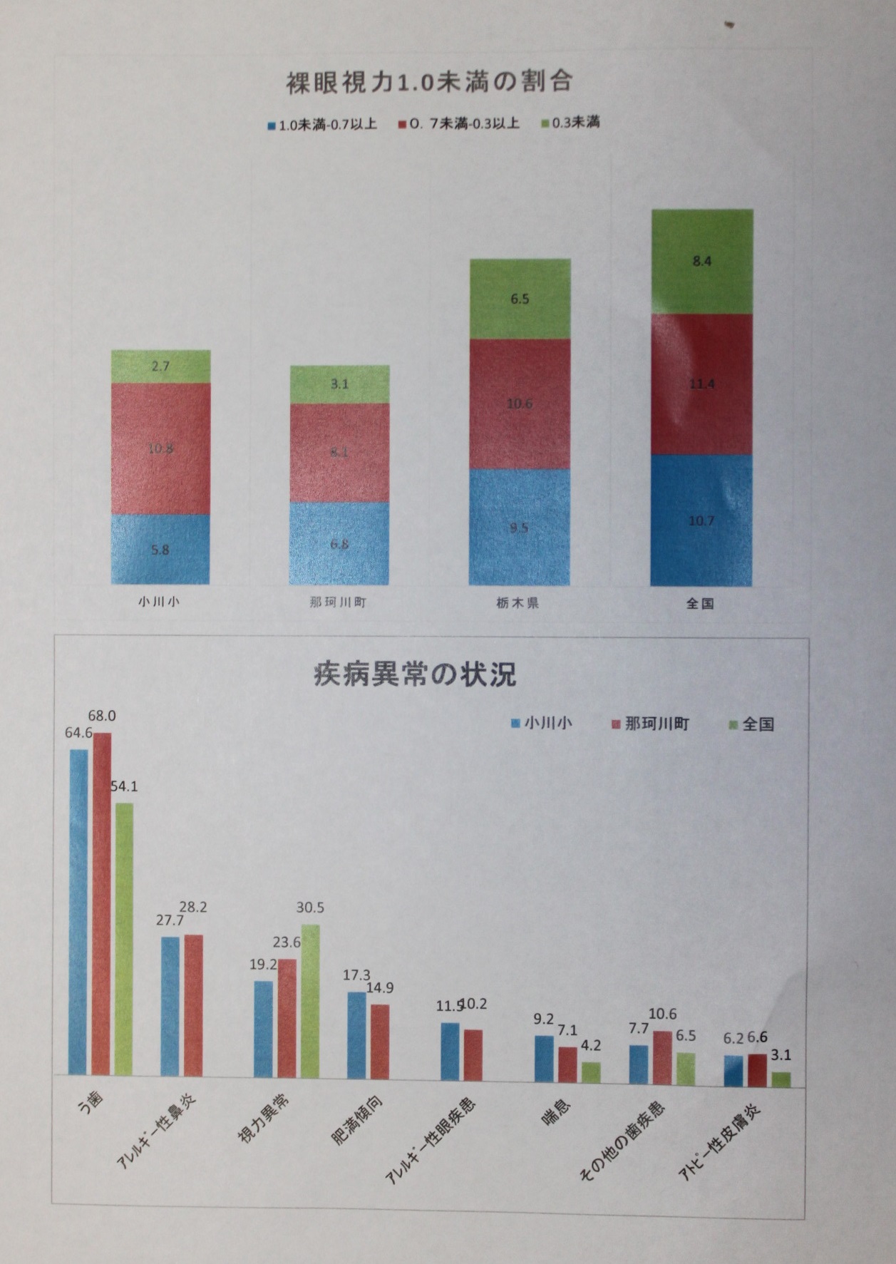 まず、養護教諭が本校児童の体格、視力、歯科衛生状況について、お話ししました。