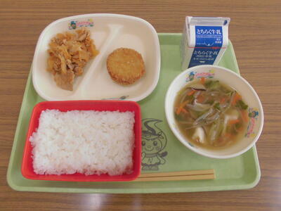 麦ごはん 牛乳 さば味噌煮 五目きんぴら のっぺい汁