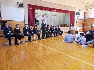・新任の先生を代表して、学校長より「よろしくお願いします」とあいさつをしました。