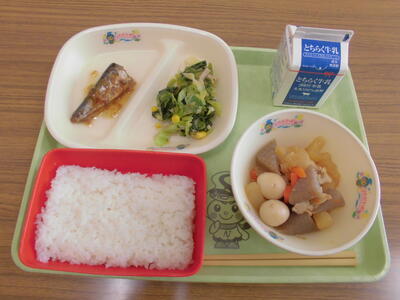 ごはん 牛乳 いわしおかか煮 ほうれん草サラダ 豚肉と大根の煮物