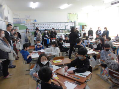 授業参観にはたくさんの保護者の方が来てくださいました。児童は頑張っている姿をお家の人に見せることができました。
