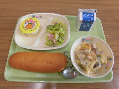 はちみつパン 牛乳 マカロニグラタン イタリアンサラダ いよかんゼリー