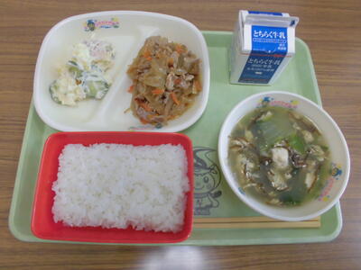 焼き肉丼(ごはん・焼き肉丼の具) 牛乳 ポテトサラダ もずくのかき玉汁