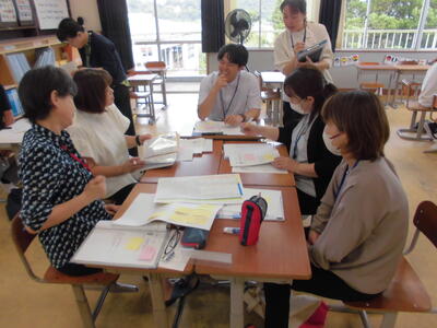 研究授業の後、参加者による授業研究会を行いました。授業研究会では、授業の中で有効だった支援や、架け橋期におけるこどもたちの言語力を育むためにできること等について話し合いました。