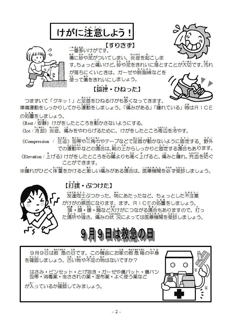 明日から三連休となります。本日、子どもたちには各担任から指導を行いますが、ご家庭でも交通ルールの遵守正しい交通マナーの実践など、交通安全意識の浸透を図るよう声かけなどをお願いしたいと思います。よろしく御願いいたします。