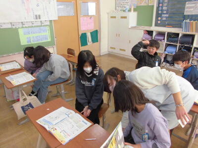活動はペアをローテーションで変えて数回行いました。1回ごとにやりとりの振り返りを行い、互いに「good point」と「もっと(こうするとよい)point」を出し合いました。児童は、1回目より2回目、2回目より3回目と回を重ねるごとに紹介の仕方や料理についての質問の仕方が上達していきました。