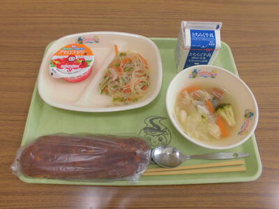 ココア揚げパン 牛乳 春雨サラダ ウインナーたっぷりポトフ アセロラゼリー