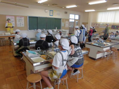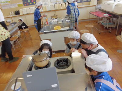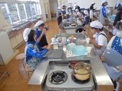 5年1組は、5・6校時に調理実習を行いました。今回は、鍋でご飯を炊きました。