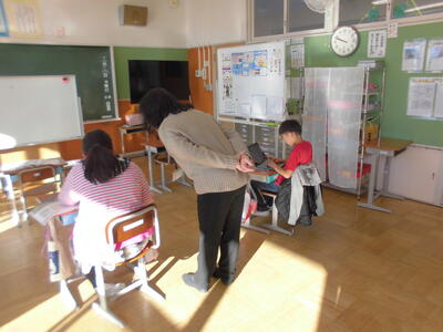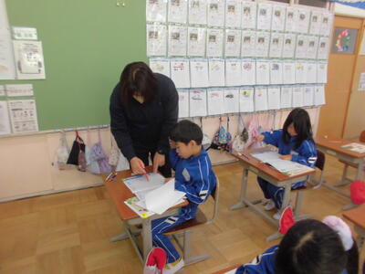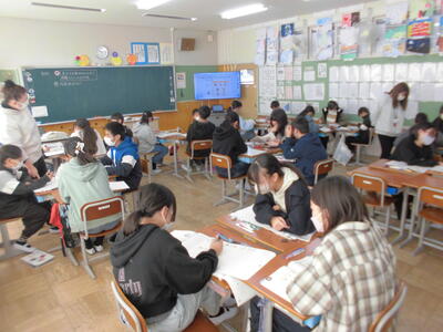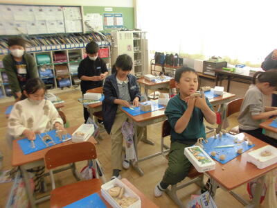 教室では、太鼓の体験に多くの時間を割いてくださり、児童は楽しく参加することができました。