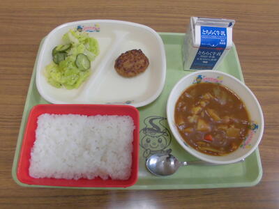 ごはん 牛乳 ハンバーグ グリーンサラダ チキンカレー