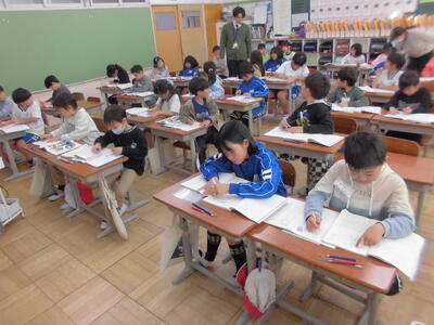 2校時に国語、3校時に算数の試験を1年生から6年生まで全学年で行いました。みんな一生懸命に、これまでの学習の成果を解答用紙に書き込んでいきました。