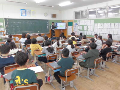 5校時、栄養教諭による「食に関する指導」がありました。