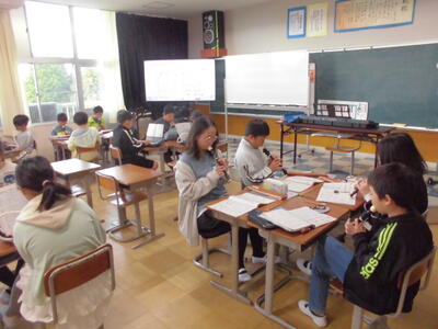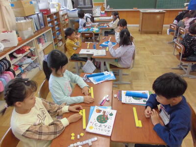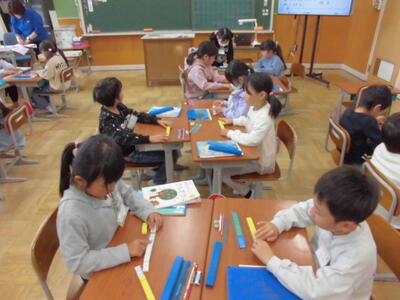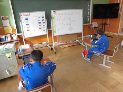 5校時、5・6年生が明日の運動会の準備を行いました。