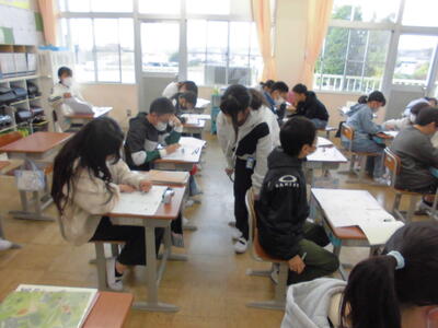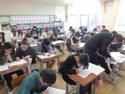 11月5日は津波防災の日です。本校では、緊急地震速報が出された際に素早く身を守れるようにシェイクアウト訓練を行いました。