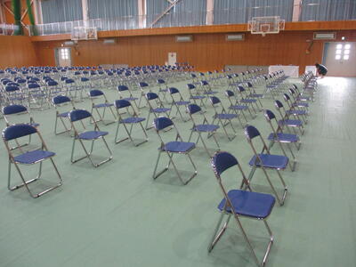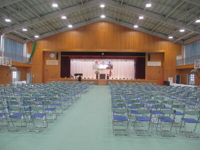澄んだ空気、輝く太陽、令和8年度入学式の朝になりました。昨日の準備では、2・3年生が心を込めて会場の設営をしました。また、教職員も新1年生が安心して登校できるよう細かい打合せや準備をしていました。