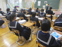 雨の朝となりましたが、生徒は元気に登校してきました。1校時、1年生は学校生活のガイダンスを進めていました。登校後の流れを確認したり、教科書に名前を書いたりしました。2・3年生は、各教科のガイダンスや復習テストからスタートしていました。
