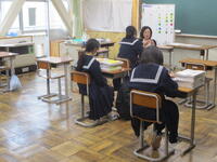 始業式では、校長先生の式辞をしっかりと聞いていました。その後の担任発表は、とても緊張している様子でした。