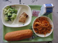 今日は今年度 最後の給食です。食事の後には、感謝の気持ちを込めて「ごちそうさま」のあいさつをしましょう。