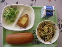 キャラメルパン 牛乳 チキンチーズ焼き グリーンサラダ                和風スパゲティ