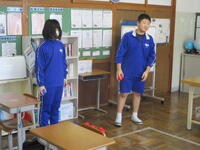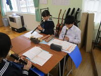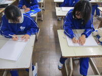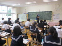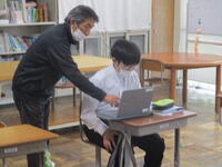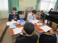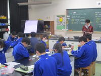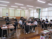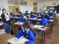 今朝は、ひんやりとした朝でした。現在も曇っており、あまり気温が上がっていません。1校時の授業の様子を紹介します。