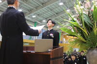 1校時に、同窓会入会式を行いました。堀江真樹会長が来校され、3年生に卒業のメッセージを伝えてくれました。