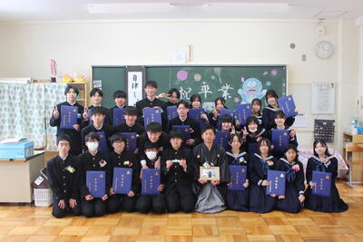 9時30分より「卒業式」を実施しました。卒業証書授与では、一人一人元気な返事をするなど堂々とした態度でした。見送りの時間には、晴れ間が見えてきて、たくさんの写真を撮っていました。思いでに残る卒業式となりました。