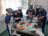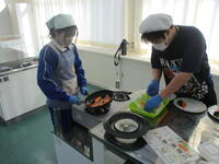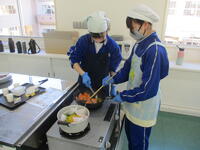 5・6校時に、1年1組が調理実習を行いました。今日は、酒のムニエルを作りました。グループで協力して調理をしていました。とても楽しそうです。