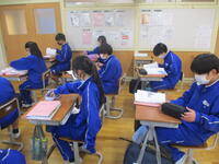 今日は、1年生が町総合学力テスト、3年生が実力テストに取り組んでいます。