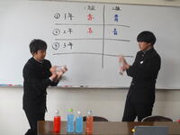 朝の時間を利用して、体育祭の色決めを実施しました。今年度は、オンラインで、決定の瞬間を配信しました。各団長の言葉の後、抽選を行いました。抽選の結果、すべての学年において1組が「赤」、2組が「青」となりました。今年度もどんなドラマが展開されるかとても楽しみです。
