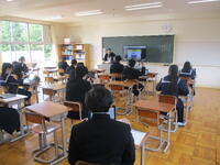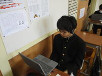 3年生は、全国学力学習状況調査を行っています。今日は、英語「読むこと・聞くこと」にチャレンジしています。タブレットを使っての調査です。明日は国語と数学、明後日は英語「話すこと」を予定しています。