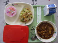 ごはん 牛乳 ポークカレー ツナと野菜のサラダ お祝いいちごゼリー
