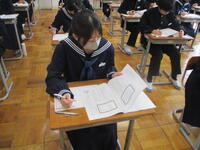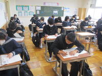 3年生は、全国学力学習状況調査を行っています。今日は、英語「読むこと・聞くこと」にチャレンジしています。タブレットを使っての調査です。明日は国語と数学、明後日は英語「話すこと」を予定しています。