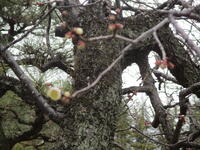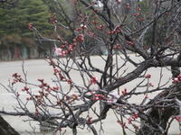 三連休は、暖かい日が続いたため、生徒昇降口前の梅の花が花を咲かせました。