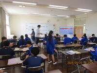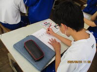 10月は、雨のスタートとなりました。3校時の授業の様子を紹介します。1年1組は社会科、1年2組は音楽に取り組んでいました。