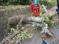 体育館脇にある桜の木が一部枯れてしまい、危険防止のため伐採しました。太い幹の桜ですが、キノコが生えてしまったり、枯れて折れてしまったりしていました。