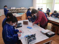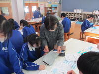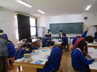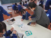 2年生の家庭科では、ブックカバーを作っています。今日は、1組、2組の授業に、地域のボランティアの方3名に来校いただきました。縫い方やうまくできないところのアドバイスをいただきました。ありがとうございました。