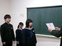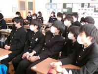 3年生では、1・2組合同で、冬休みの事前指導を行いました。特に、冬休み中にスタートする私立高校受験について時間を取り説明しました。ご家庭でも、一緒に確認したり、受験校のホームページをこまめにチェックしたりしてみてください。また、一斉メールでもお知らせしましたが、当日の交通手段には十分ご注意ください。