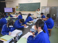 雨の朝となりましたが、生徒は元気に登校してきました。1校時、1年生は学校生活のガイダンスを進めていました。登校後の流れを確認したり、教科書に名前を書いたりしました。2・3年生は、各教科のガイダンスや復習テストからスタートしていました。