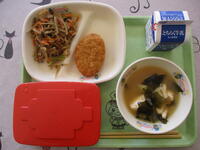 麦ごはん 牛乳 まぐろかつ 五目きんぴら じゃがいもの味噌汁