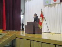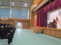 1校時に、同窓会入会式を行いました。堀江真樹会長が来校され、3年生に卒業のメッセージを伝えてくれました。