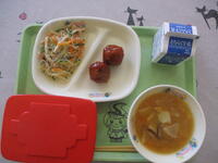 ごはん 牛乳 肉団子ケチャップあん 春雨サラダ ピリ辛味噌汁