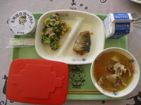 ごはん 牛乳 さば味噌煮 とツナの和え物 ピリ辛豚汁                        ヨーグルト
