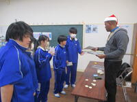 今日は、馬頭中学校のEnglish Dayです。馬頭中学校のALTのクリスの他、他の小中学校のALTの先生方が来校し、英語の授業等に参加しました。普段とは違った雰囲気で、教室はたくさんの英語が飛び交っていました。また、クリスマスの変装をして授業を行っていて、とても楽しい時間になりました。今日は、どのクラスも英語の授業があり、English Dayを満喫しました。