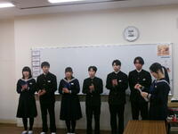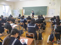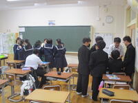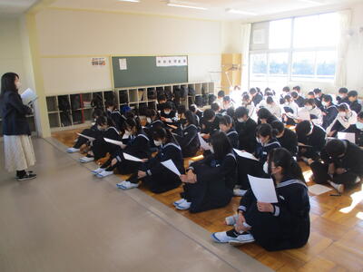 3年生では、1・2組合同で、冬休みの事前指導を行いました。特に、冬休み中にスタートする私立高校受験について時間を取り説明しました。ご家庭でも、一緒に確認したり、受験校のホームページをこまめにチェックしたりしてみてください。また、一斉メールでもお知らせしましたが、当日の交通手段には十分ご注意ください。