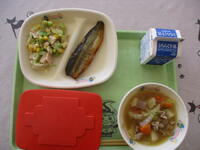 麦ごはん 牛乳 にしん照り焼き かんぴょうサラダ 豚汁