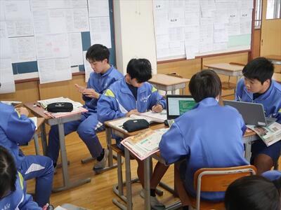 本時の5校時、授業参観を行いました。多くの保護者の方にお越しいただき誠にありがとうございます。1年生と2年生は総合的な学習の時間の発表を行いました。3年生は学級活動で、事前アンケートの結果を基に、今抱えている悩みや不安について解消する方法などを検討していました。